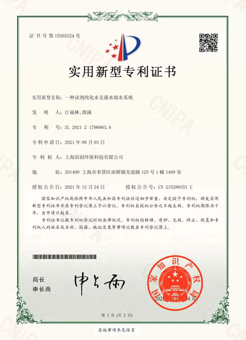 濱潤環(huán)保實(shí)用新型專利證書