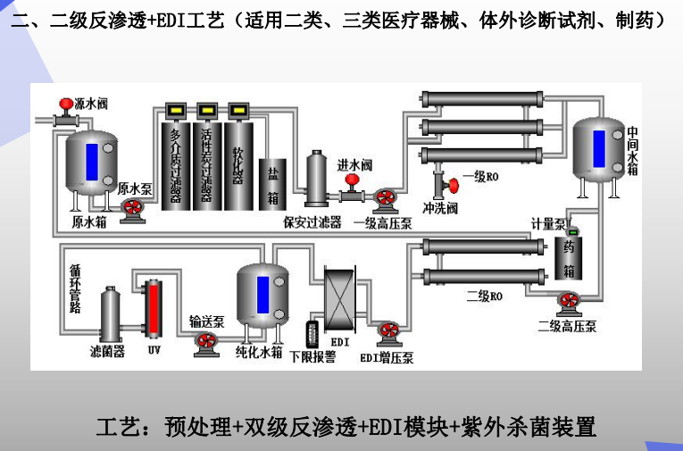 3、一般純化水硝酸鹽不合格的原因的表象為電導(dǎo)率合格硝酸鹽或者亞硝酸鹽超標(biāo),這是反滲透的疑難雜癥之一,一般是微生物污染引起的,其機理為在厭氧條件下,以硝酸根為電子受體,進行的無氧呼吸會產(chǎn)生亞硝酸鹽。解決辦法:做一次化學(xué)清潔一般用2%左右的氫氧化鈉,在做一次全面的消毒久可以解決這種問題。如果還是不行的話建議消毒系統(tǒng)中的活性炭過濾器,更換膜組件,更換純水管道。